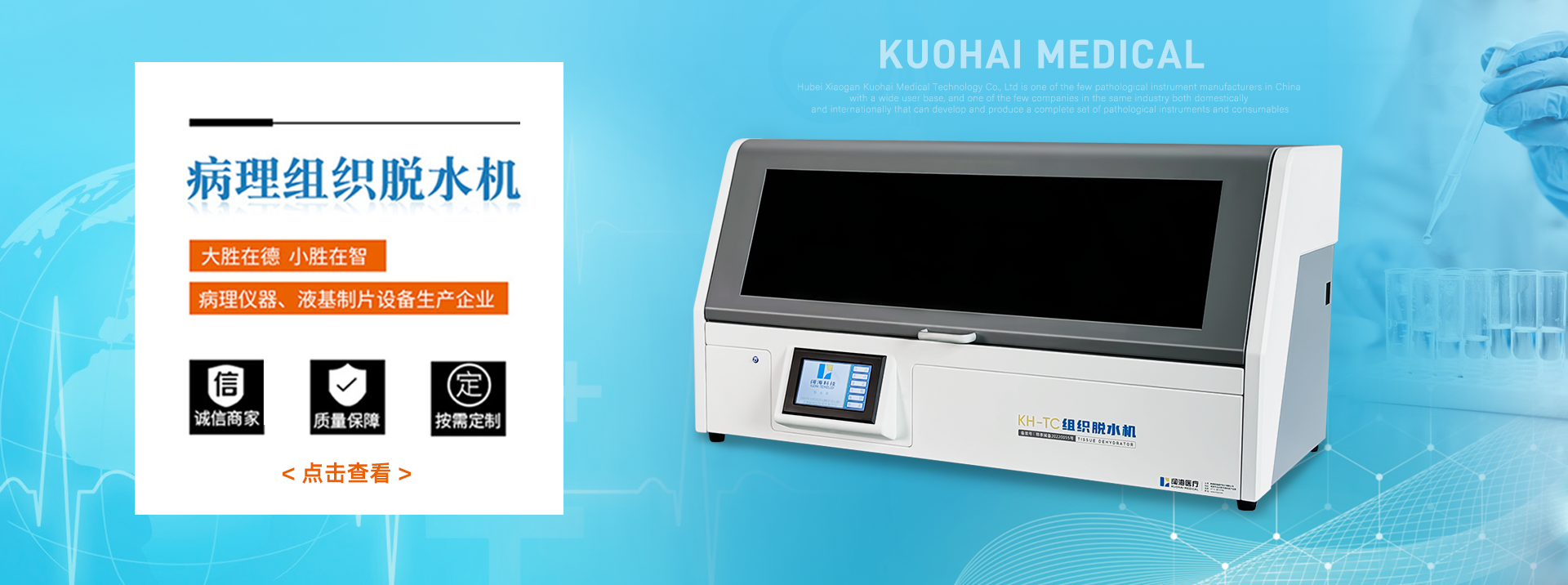 湖北孝感闊海醫(yī)療科技有限公司是國內(nèi)少有的、擁有遍布中國用戶群的病理儀器、解剖設(shè)備生產(chǎn)企業(yè),也是國內(nèi)外同行業(yè)中為數(shù)不多的幾家能研發(fā)、生產(chǎn)全套病理儀器、解剖臺設(shè)備及病理耗材的企業(yè)之一。2014年,公司新建現(xiàn)代化生產(chǎn)加工基地。2015年,闊海曾獲得“國家高新技術(shù)企業(yè)”認(rèn)定。